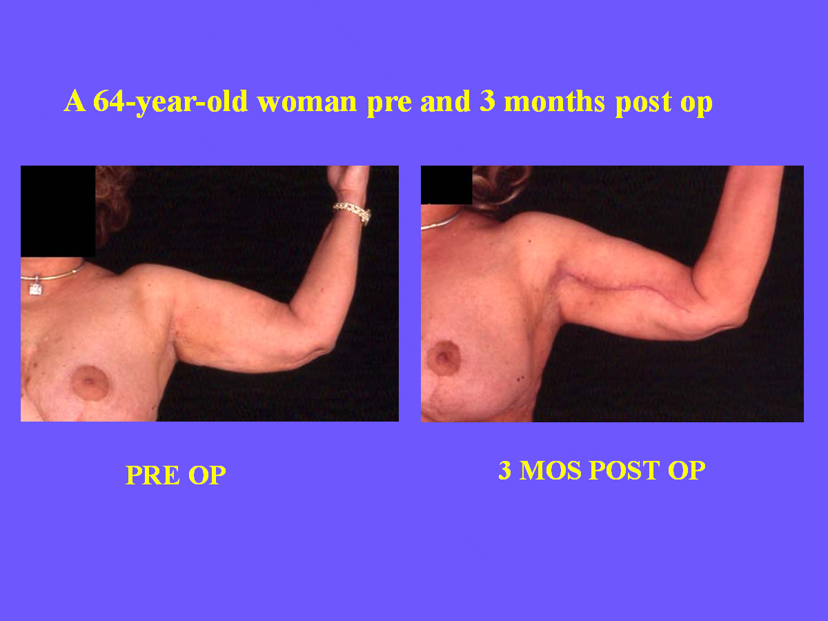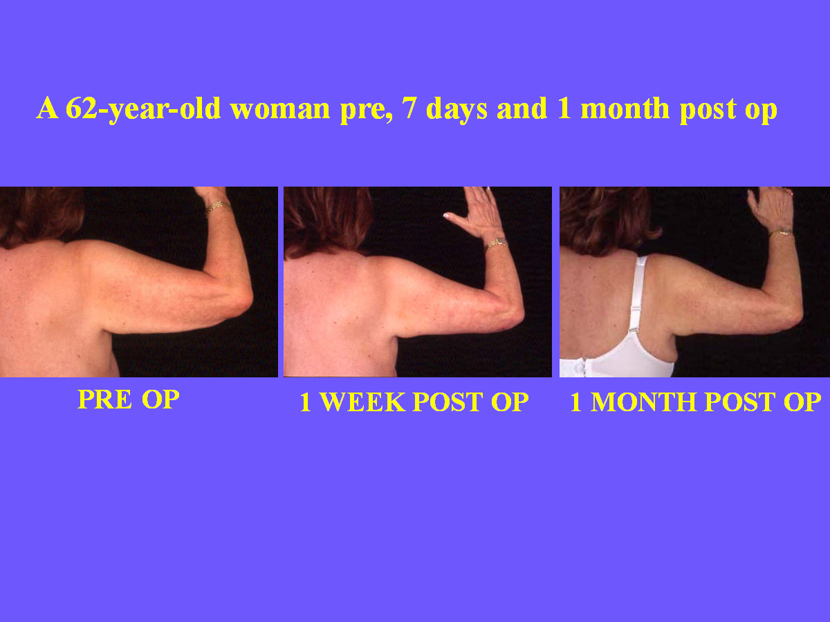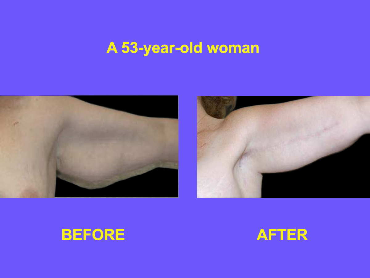 Although liposuction is can be performed to suction out fat deposits in conjunction with arm reduction surgery, liposuction alone is not always option for patients with loose, poorly toned upper arm skin. When hanging upper arms are caused primarily by excess skin, or by a combination of excess fat and loose skin, arm reduction surgery is the best remedy. On the other hand, liposuction, which requires only tiny incisions, may be effective by itself if the amount of excess fat is moderate and if skin is tight and elastic enough to contract sufficiently following fat removal.